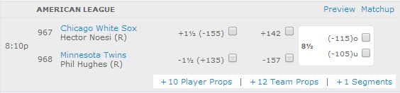 On Thursday night, we will place our bets for the Twins and the White Sox over at Bovada.lv, where the Twins are favored at home with Hughes on the mound. We are going to bet 10 percent of our bankroll on the Twins and the -157 money line as they take the opener of this four-game set with the White Sox.