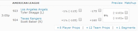 We will place our MLB bets Sunday afternoon at Bovada.lv, where the Angels are favored to win this game on the road. We are going to drop 15 percent of our bankroll on the red-hot Angels and the -175 money line as they sweep this four-game set from the Rangers before the All-Star break.