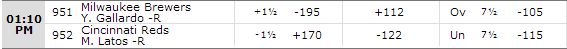 Betting on Major League Baseball Sunday afternoon will be done at BetOnline.ag, where the visiting Brewers are underdogs against the Reds. We still like Gallardo and Milwaukee to get the job done today, which is why we will bet 10 percent of our bankroll on the Brewers and the OVER 7.5 total runs scored at -105 in this National League Central contest early Sunday.