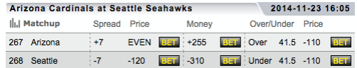 Sunday afternoon, the streaking Cardinals will visit the Seahawks for an NFC West contest. We will use the odds found at TopBet.eu to place our wager. Somehow, Seattle is favored by a touchdown in this game, which we do not agree with. We are going to bet 15 percent of our bankroll on Arizona and the OVER 41.5 total points scored as they move to 10-1.