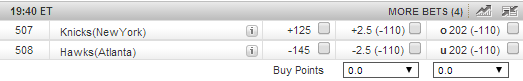 Despite playing better right now than the Hawks, the Knicks are underdogs on the road by 2.5 points at Sportsbook.ag. Since the line does not favor the Knicks, but we think they will win this game, we will back them with 10 percent of our bankroll to beat the OVER 202 total points scored at -110 tonight.