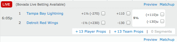 When the Lightning host the Red Wings on Sunday evening, we will use the odds found at Bovada.lv to place our bet. Tampa Bay’s offense is one of the best in the league this year, which is why we like them to win this game against Detroit. We are going to put our money down on the Lightning to outright win this contest and add two more points to their total.