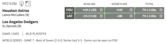 Jose Altuve needs to have a big game for the Astros in Game 7. The Dodgers have silenced Houston’s best player for most of the series as he has six hits in six games and is hitting just .214. George Springer (.375, five home runs) is having a great World Series and Carlos Correa (.280, two home runs) has delivered as well.