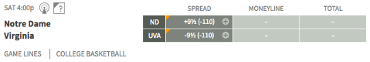 Notre Dame (+9.5) at No. 1 Virginia — The Cavaliers (27-2) are 16-1 in ACC regular season play for the third time in five seasons.