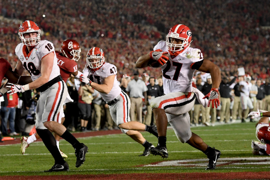 Both teams had more than 500 yards of total offense in Georgia’s win over Oklahoma. But the Bulldogs wore the Sooners down on the ground with 317 yards rushing. Sony Michel had 11 carries for 181 yards and three scores, while Nick Chubb had 14 carries for 145 yards and two TDs.