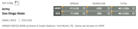 The Black Knights are looking for their second straight bowl win, but San Diego State’s run defense has limited opponents to 110.8 yards a game. Army has won seven of its last eight games and is 6-6 ATS. San Diego State has won four in a row and is 8-4 ATS.