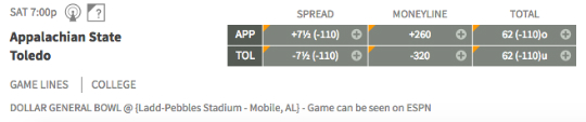 Appalachian State vs. Toledo — The Rockets (11-2) are out for revenge after losing by a field goal to the Mountaineers (8-4) in the Camellia Bowl last year.