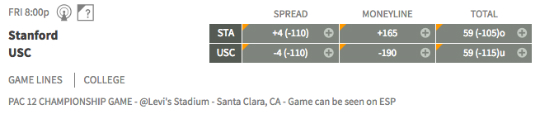 Neither team has a winning record against the spread — USC is 3-8-1, while Stanford is 5-6-1. Even though this game means a lot out West, it will not have an affect on the national playoffs.