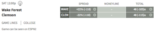 Wake Forest at No. 2 Clemson (-22.5) — The Tigers won their third straight game against a Top 25 team last weekend when they beat Virginia Tech by two touchdowns. The defending national champions (5-0) have also beat Auburn and Louisville this season.