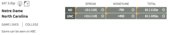 No. 21 Notre Dame (-15) at North Carolina — The Fighting Irish lost a tight game in Week 2 to Georgia, who has climbed to No. 5 in the rankings. Since that game, Notre Dame is 3-0 and has outscored their opponents 139-55. The Tar Heels, who have been favored in three of their five games, are 1-4 overall and 0-3 at home in Chapel Hill.