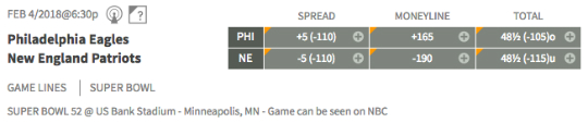 Philadelphia, the No. 1 seed in the NFC, will square off against New England in the 52nd league final indoors at U.S. Bank Stadium in Minneapolis on Sunday, Feb. 4 at 6:30 p.m. ET. The Eagles (15-3) head into the final playoff game of the season as underdogs for the third straight game — this time by five points (odds provided by bovada.lv).