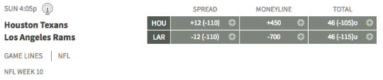 Here are the picks for Week 10 (odds provided by Bovada).