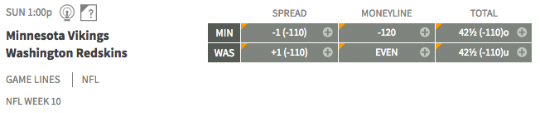 Minnesota at Washington — The Redskins (4-4) return home after a huge win in Seattle. They are 3-5 ATS and have only been favored once this year. Now they face one of the best defenses in the league. The Vikings (6-2) have won four straight with Case Keenum enjoying a career year. He’s only passed for seven TDs, but he’s limited his mistakes with just three interceptions. Minnesota is 5-3 ATS.