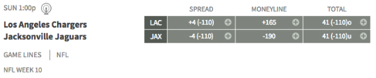 Los Angeles Chargers at Jacksonville — The Jaguars (5-3) run the ball well and play great defense. Winners of two in a row, they are also 5-3 ATS. The Chargers (3-5) lost their first four games to start the season, but they have won three of their last four. They are 3-4-1 ATS. But it’s hard to pick against the Jacksonville defense, as they’ve only allowed seven points in their last two games.