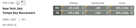 New York Jets at Tampa Bay — There seem to be a lot of bad teams playing each other this week. This game opened as a pick, but the line has slid in favor of the Jets (4-5). The Jets are 6-2-1 ATS and looking to get back to .500 against the Bucs (2-6), who have lost six straight and are now without Jameis Winston (injury) and Mike Evans (suspension). Tampa is 1-6-1 ATS and pretty much done for the year.