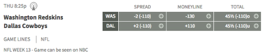 Washington at Dallas — The Cowboys (5-6) are lost without Zeke. They have scored a grand total of 22 points in three games without their star running back. They haven’t covered the spread in any of those games either. But the Redskins (5-6) are banged up as well. They’ve won two of their last six games and have only been favored twice this year. Both teams need a win to keep their playoff hopes alive.