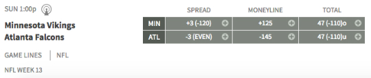 Minnesota at Atlanta — Two top NFC teams hook up in this one. The Falcons (7-4) need a win here more than the Vikings (9-2). Atlanta is 5-6 ATS, while Minnesota is 8-3 — one of the best records in the league. The Vikings have been an underdog just three times this season. They have won two of them straight up. Both defenses rank in the top 10 this season, but the Vikings are a lot better against the run.