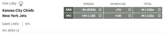 Kansas City at New York Jets — Kansas City fans must be frustrated beyond believe these days. The Chiefs (6-5) started the season off 5-0 and looked like serious Super Bowl contenders. They’ve lost five of their last six and have scored 108 points in those games — an average of 18 points. The Jets have lost five of their last six as well. New York is 6-4-1 against the spread, while Kansas City is 6-5.