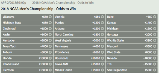 It all ends with the championship on April 2 in San Antonio, Texas. The North Carolina Tar Heels are the defending champs. They are currently 18-1 to win it all again.
