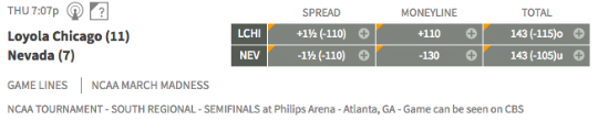 Nevada is 2-0 ATS in the tournament, while Loyola-Chicago is also 2-0.