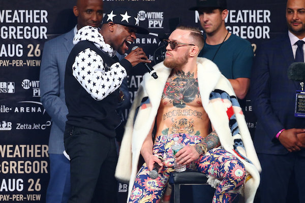 Mayweather taunted McGregor for tapping out against Nate Diaz. “Real fighters don’t quit,” Mayweather reiterated. All three of McGregor’s MMA losses have come from submission.