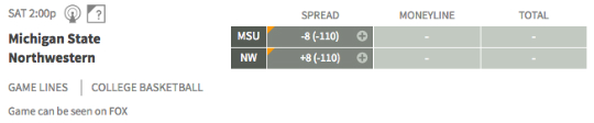 **VGB’s college basketball parlay pick (odds provided by Bovada) — Take Michigan State (-8) over Northwestern and Xavier (+1) over Villanova. If both teams cover the spread, the payoff is $68.17 for a $25 bet. If either team loses against the spread, the ticket is void.