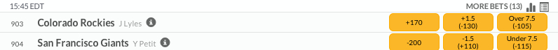 With two straight wins in this series, the Giants have pulled into the second NL Wild Card spot. They will look to take the series finale on Thursday, winning three of four from Colorado, as Yusmeiro Petit takes the mound for the Giants. Colorado will counter with Jordan Lyles. The Giants are still within striking distance of the Dodgers in the NL West as they sit just five games out of first in the standings. We like the host Giants to win this game and the series.