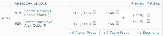 We head over to Bovada.lv and their sportsbook to find the betting odds for today’s AL contest between the Rays and the Mariners from Florida. We like Tampa Bay to win a second straight game today as we drop 15 percent of our bankroll on the Rays and the -155 money line this afternoon. Place your bets now and enjoy all the action in the Major Leagues beginning early today.
