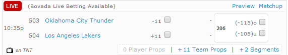 When the league’s top team takes on one of the league’s worst teams on Thursday night, the oddsmakers at Bovada.lv put the Thunder at 11-point favorites. Over the past couple of years it would be difficult to count out the Lakers, but this season is completely different. Lay down 15 percent of your bankroll on the Thunder and the spread on Thursday night.