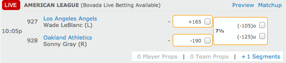 Wade LeBlanc takes on Sonny Gray in Oakland on Tuesday night as both teams still have goals to meet prior to the playoffs. We will place our bet at the sportsbook found at Bovada.lv, where the A’s are home chalk to win this game. We will drop 10 percent of our bankroll on the A’s and the -190 money line.